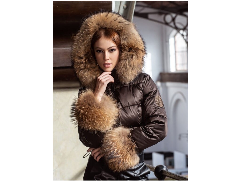 Dámska zimná bunda od značky LOCO LUXO v hnedej farbe.