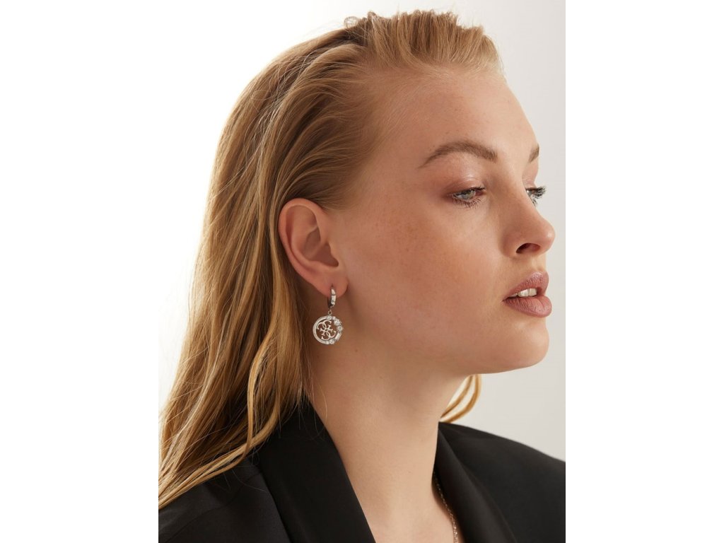 Štýlovo elegantné dámske naušnice s jedinečným dizajnom ktoré určite upútajú Vašu pozornosť! Chcete vyniknúť? Tak milé dámy osvojte si tento jedinečný doplnok od značky GUESS v krásnej striebornej farbe.