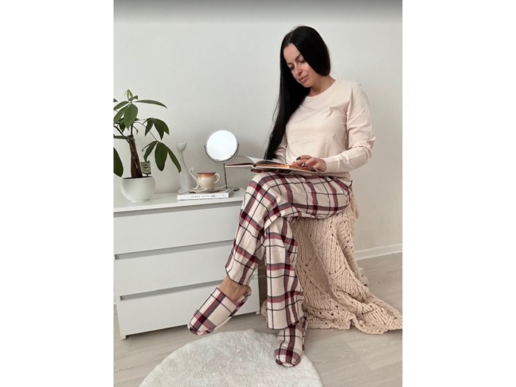Ak máte radi pohodlie a kvalitu, tak by ste mali siahnuť po pyžame od značky Tommy Hilfiger, ktorá kladie pri výrobe dôraz na kvalitné a príjemné materiály. V kúsku od tejto značky si môžete vychutnávať príjemný spánok alebo ho využijete na domáci relax. Pyžamo pozostáva z trička s dlhým rukávom v béžovej farbe a z dlhých károvných nohavíc. Vrchný diel má na ľavej strane výšivku mini loga značky. Súčasťou pyžama sú aj papučky.