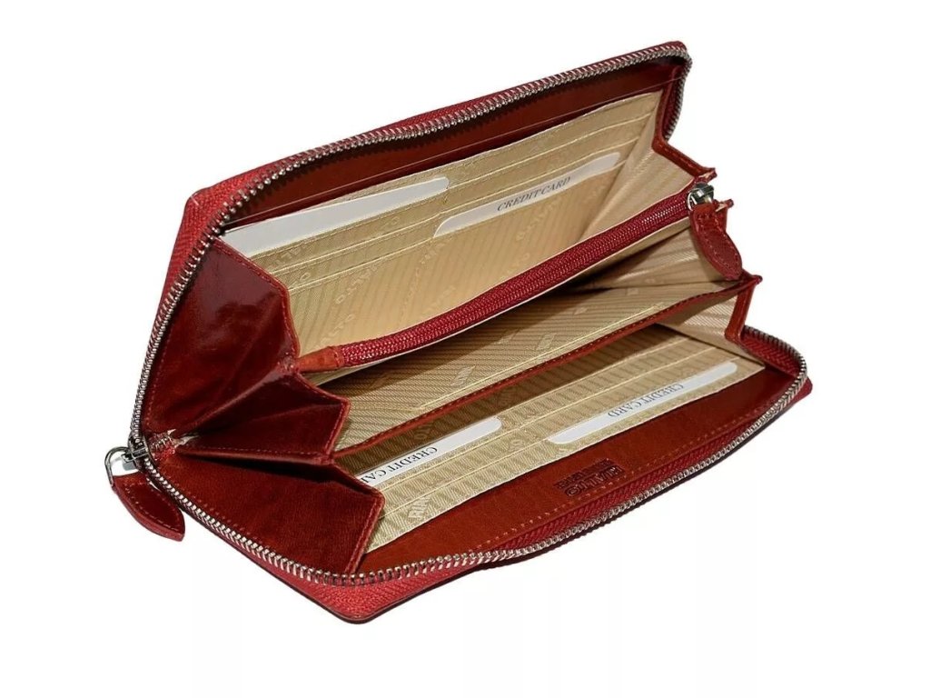 Krásna väčšia dámska peňaženka vyrobená z kože, ktorá je medzi dámami obľúbená nielen pre svoj jedinečný vzhľad, ale aj pre praktický dizajn.
