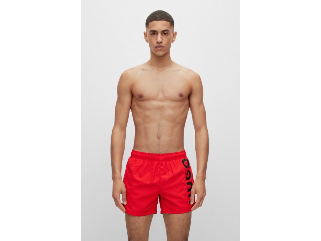 Kompletne podšité plavkové šortky značky HUGO, vyrobené z rýchloschnúcej látky strihanej na krátku dĺžku a detailne zdobené skrytou šnúrkou a výrazným logom. Pre naše ZODPOVEDNÉ produkty vždy používame minimálne o 60% udržateľnejšie suroviny. Tento odev je vyrobený z minimálne 60 % certifikovaného recyklovaného polyesteru. Recyklovaný polyester je umelé vlákno vyrobené z odpadu na báze oleja, ako sú staré PET fľaše. Je to udržateľnejšia možnosť v porovnaní s konvenčným polyesterom, keďže môžeme opätovne použiť materiál, ktorý už bol vyrobený. Používanie recyklovaného polyesteru tiež znižuje plastový odpad a zabraňuje tomu, aby skončil na skládkach. Používame iba suroviny s overeným spotrebiteľským reťazcom, aby sme zabezpečili používanie certifikovaného recyklovaného polyesteru.